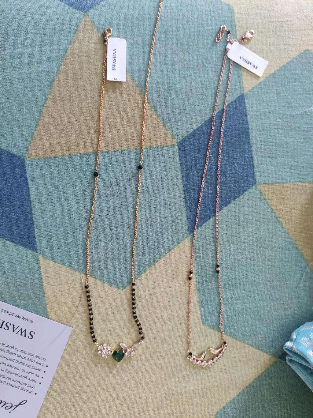 A vivid green heart-shaped stone takes center stage, framed by sparkling floral and butterfly motifs on dual black-bead chains. Elegant, symbolic, and crafted for the modern woman who loves tradition with a hint of color.