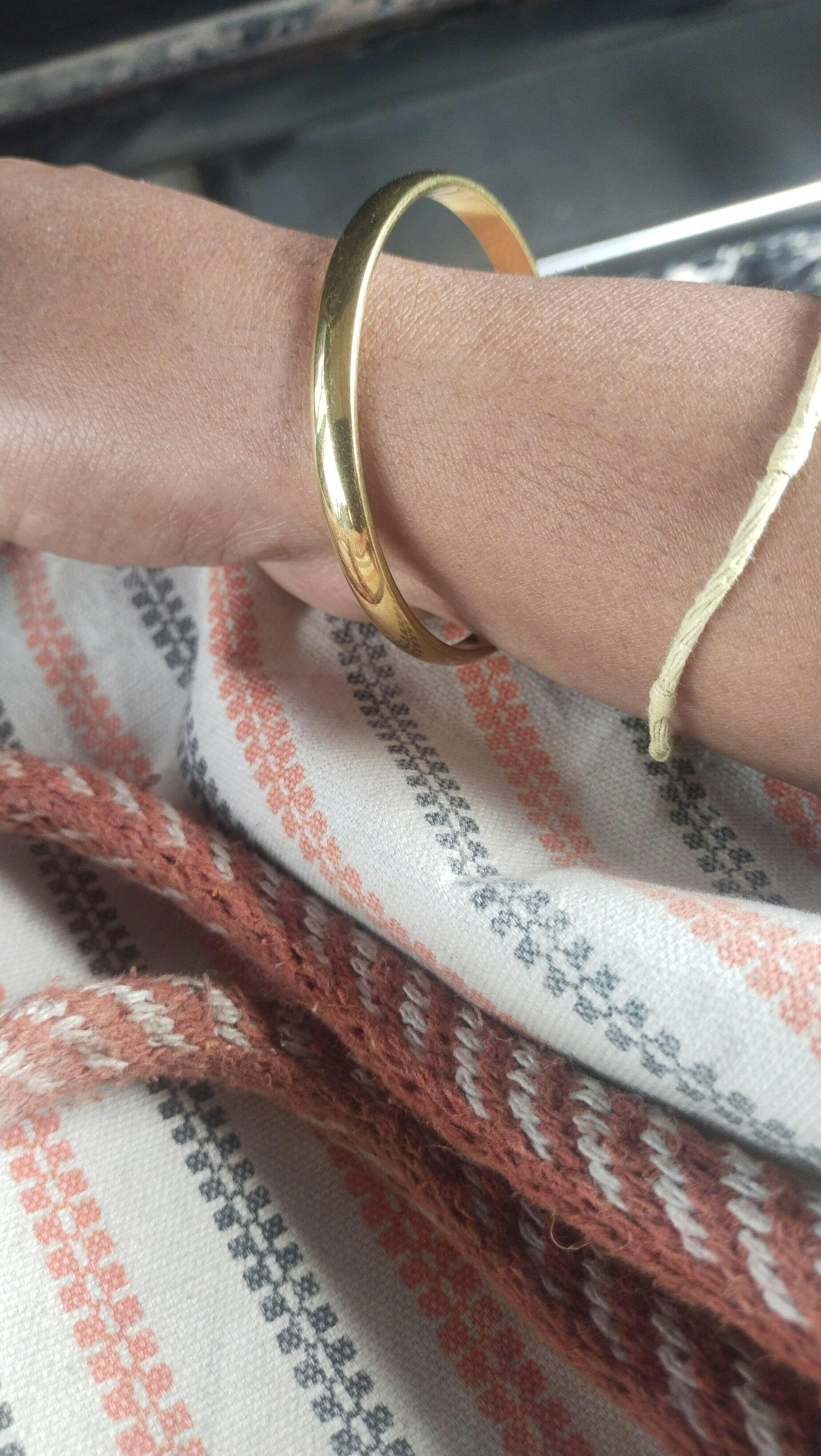 Classic gold-plated bangle with a smooth, polished surface and sleek rounded edges. Slip-on closure - minimal, timeless, and perfect for layering with other bangles.