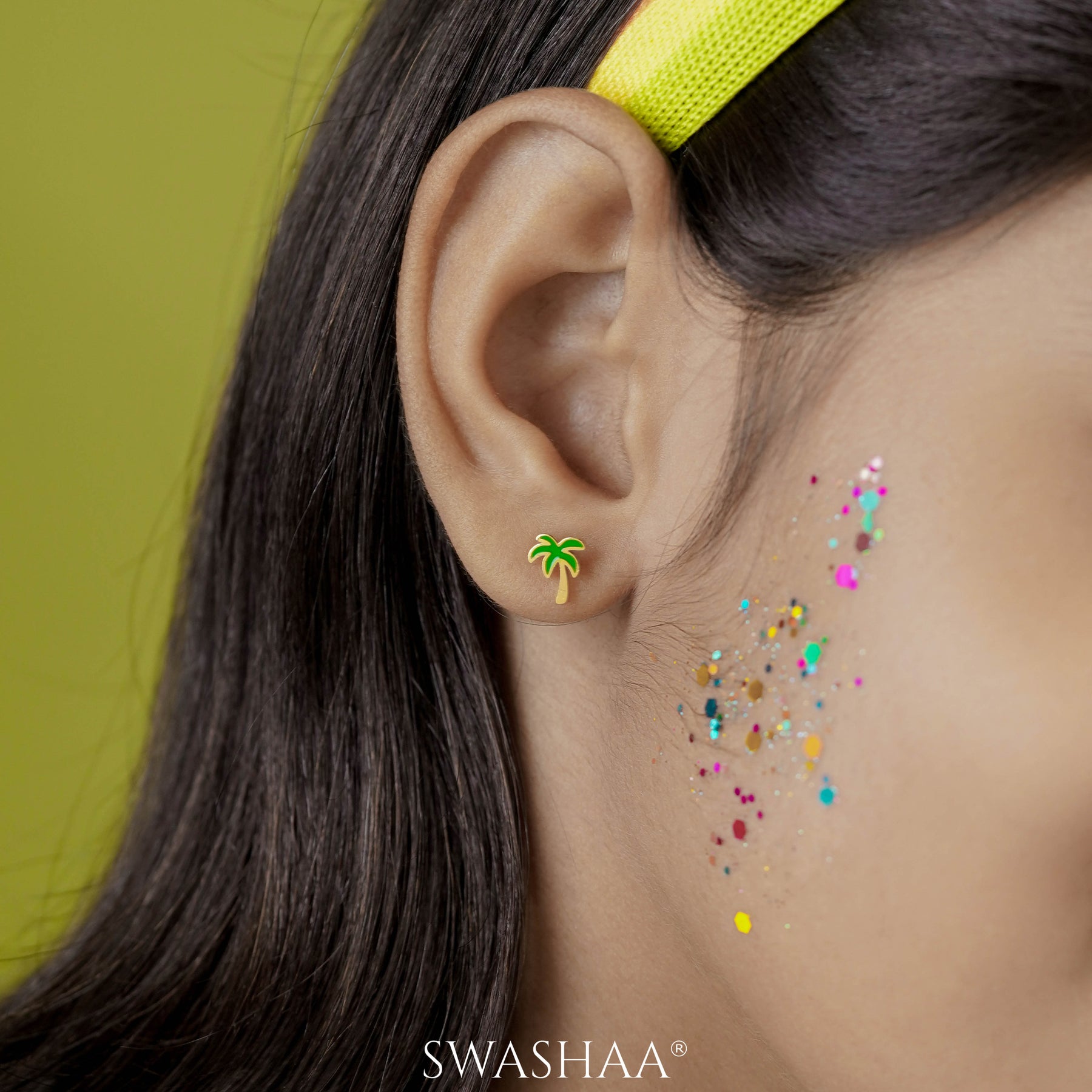 The Tall Coconut Kid's Earrings feature a fun, tropical-inspired design with a coconut tree motif. Crafted in a gold-tone finish with vibrant green enamel, they are lightweight and comfortable, adding a touch of the tropics to any outfit.