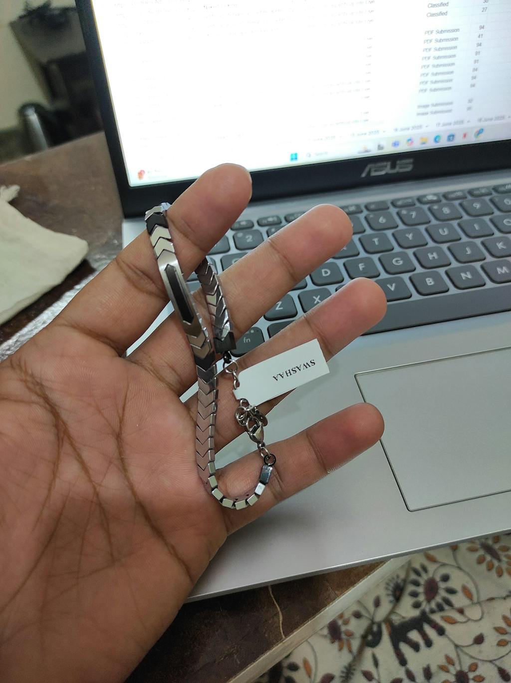 - Material: Stainless Steel + Hematite