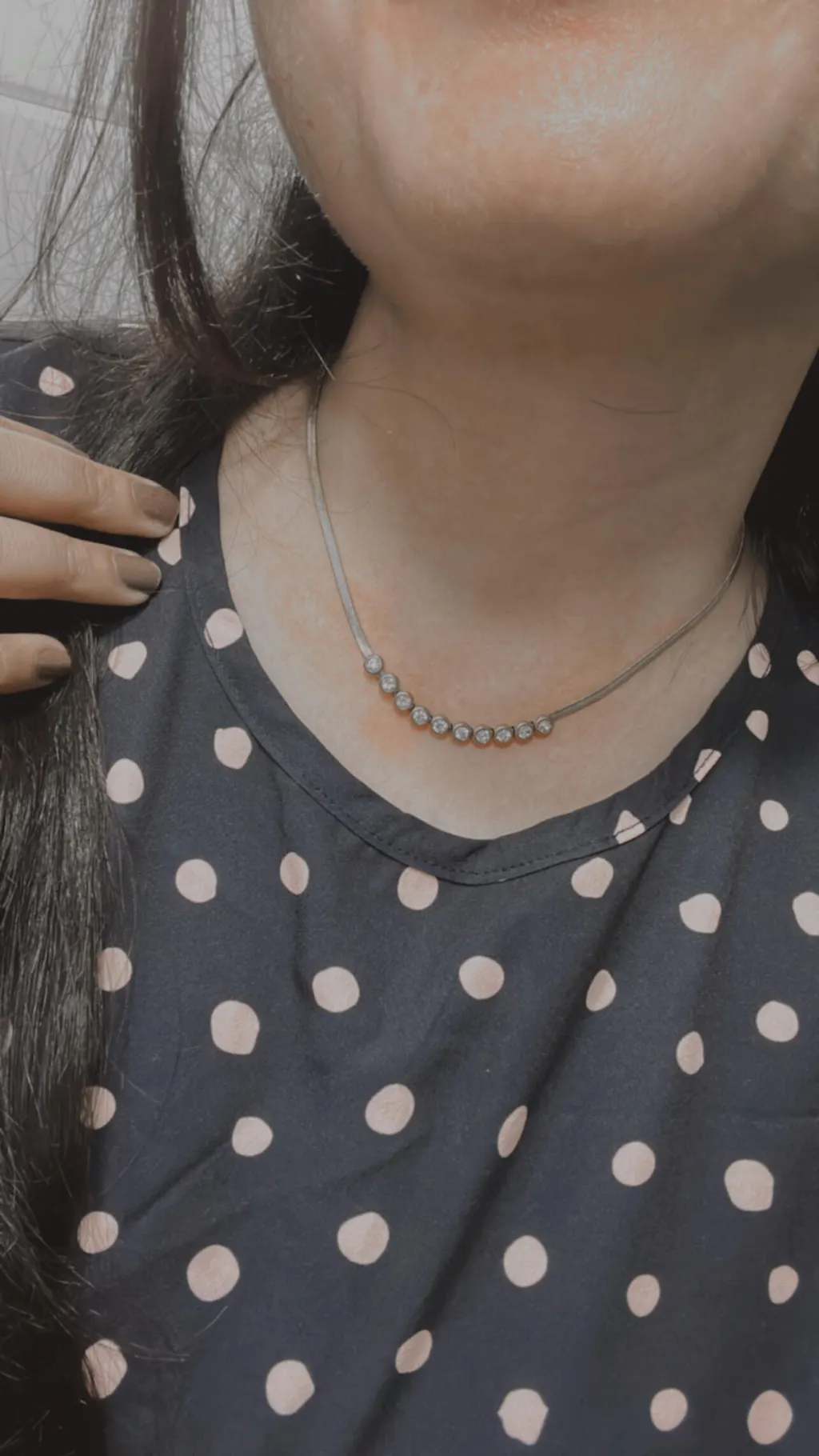 Gold, silver and rosegold tone herringbone chain with a curved row of bezel-set clear stones. Clean, radiant, and perfect for both ethnic and modern fits.