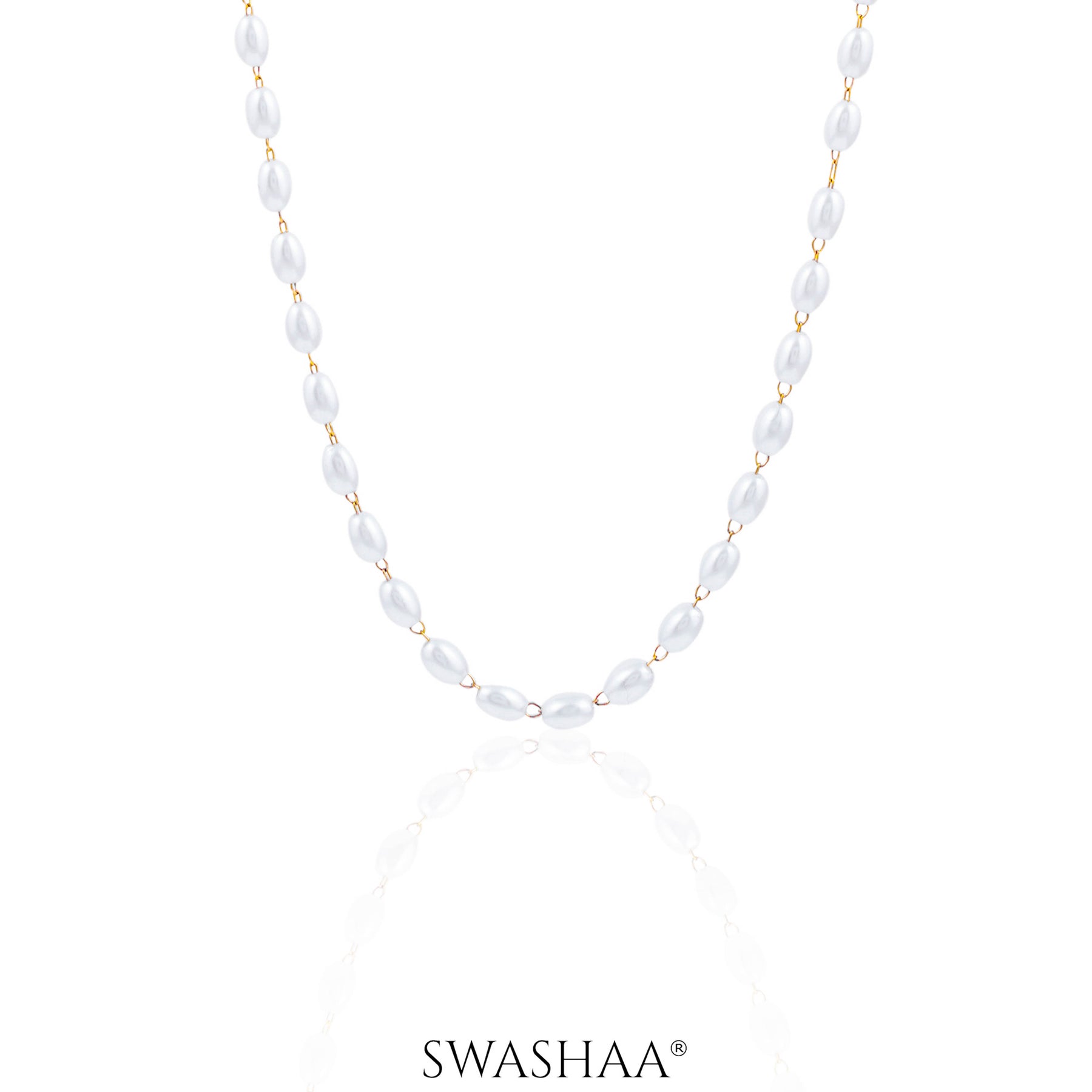 Oval pearl necklace linked with subtle gold connectors - elegant, soft, and made for moments that call for grace.