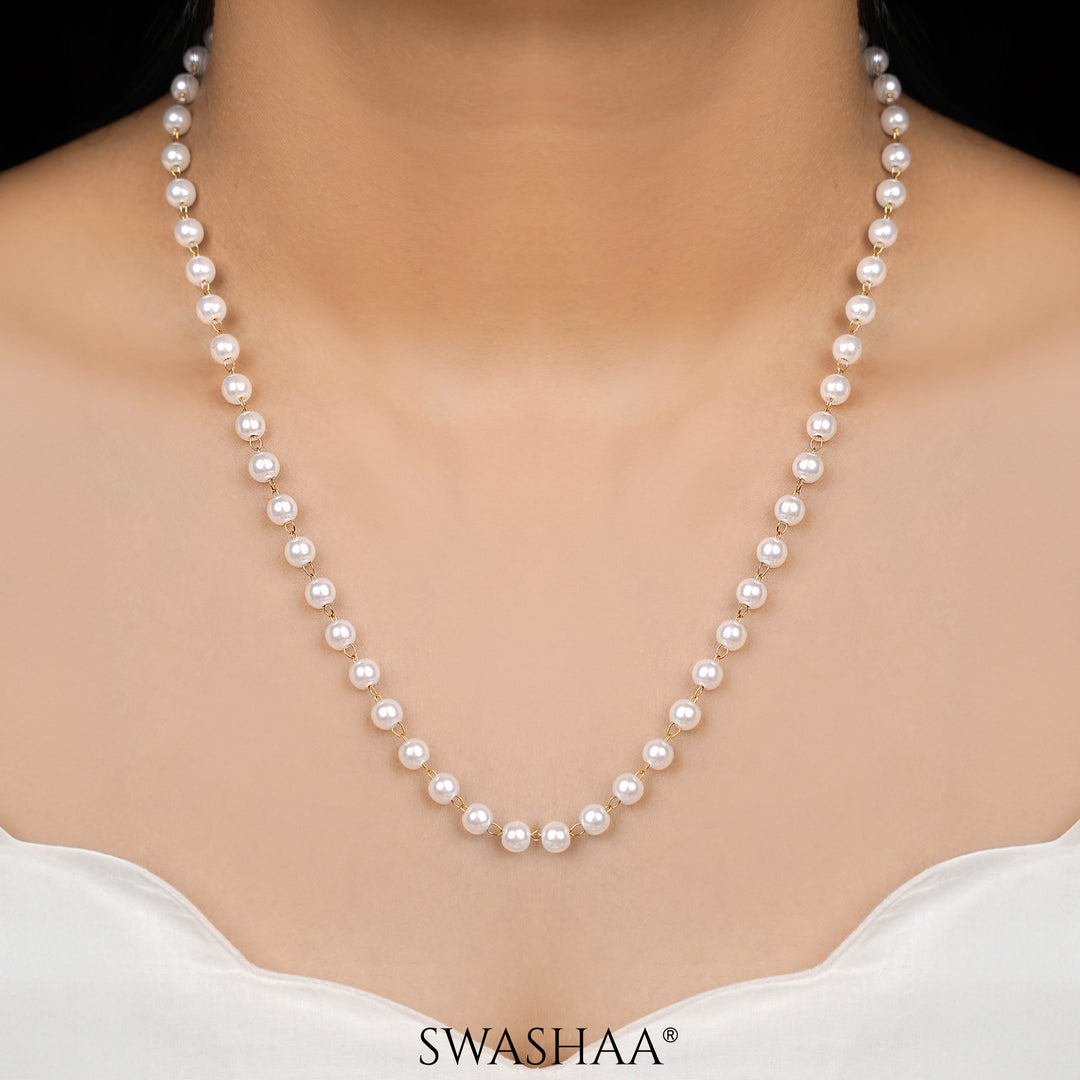 Classic round pearls linked with golden joints for a graceful silhouette. Timeless charm, perfect for elevating everyday or occasion looks.