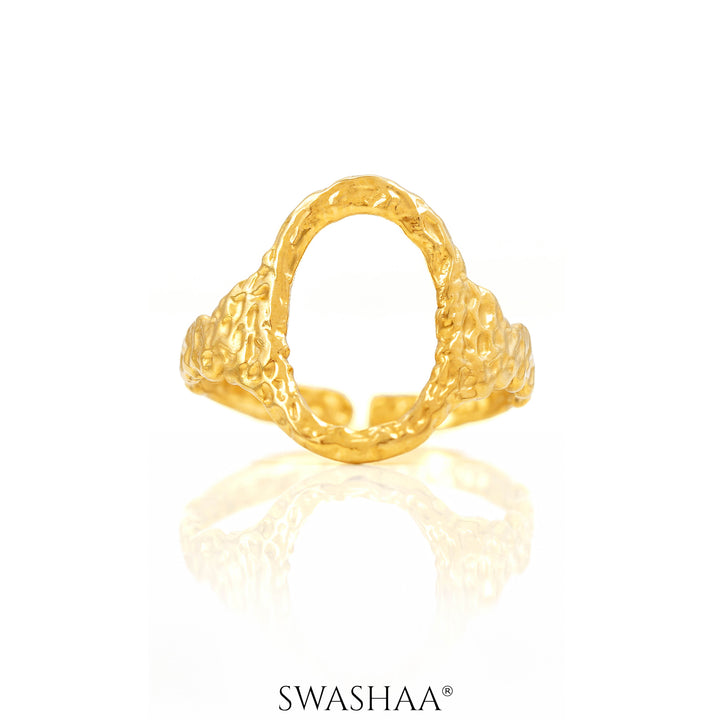 Gold-tone textured open ring with a hammered finish and freeform shape. Raw, organic, and effortlessly stylish for modern layering.