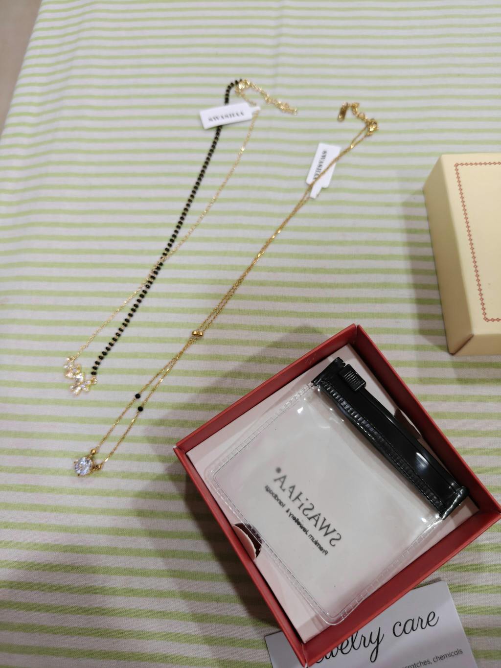 Two sparkling Heart Flower motifs flutter at the center, crafted with marquise-cut CZ stones and dainty pavé wings. Set on a half-and-half chain of glossy black beads and a delicate gold link. Graceful, youthful, and full of charm.