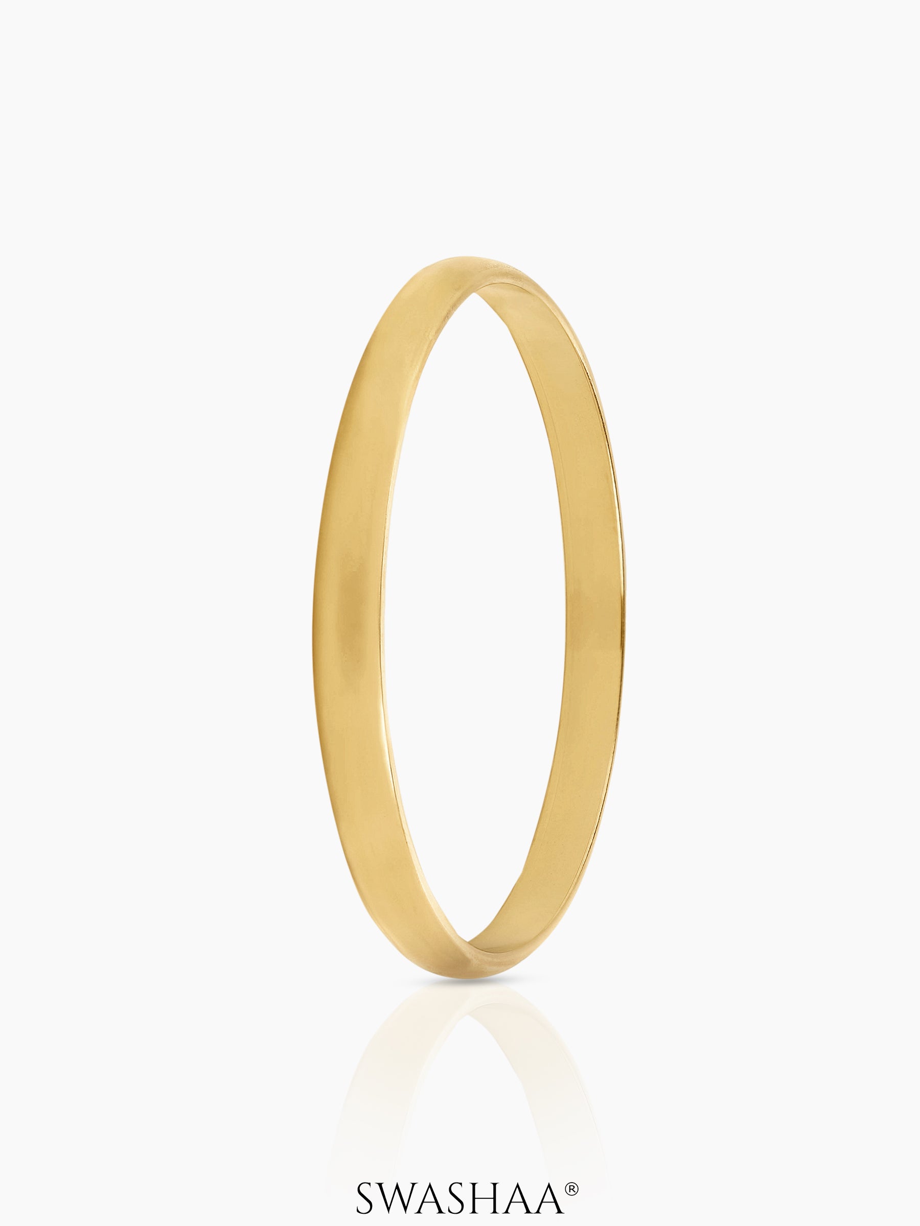 Classic gold-plated bangle with a smooth, polished surface and sleek rounded edges. Slip-on closure — minimal, timeless, and perfect for layering with other bangles.