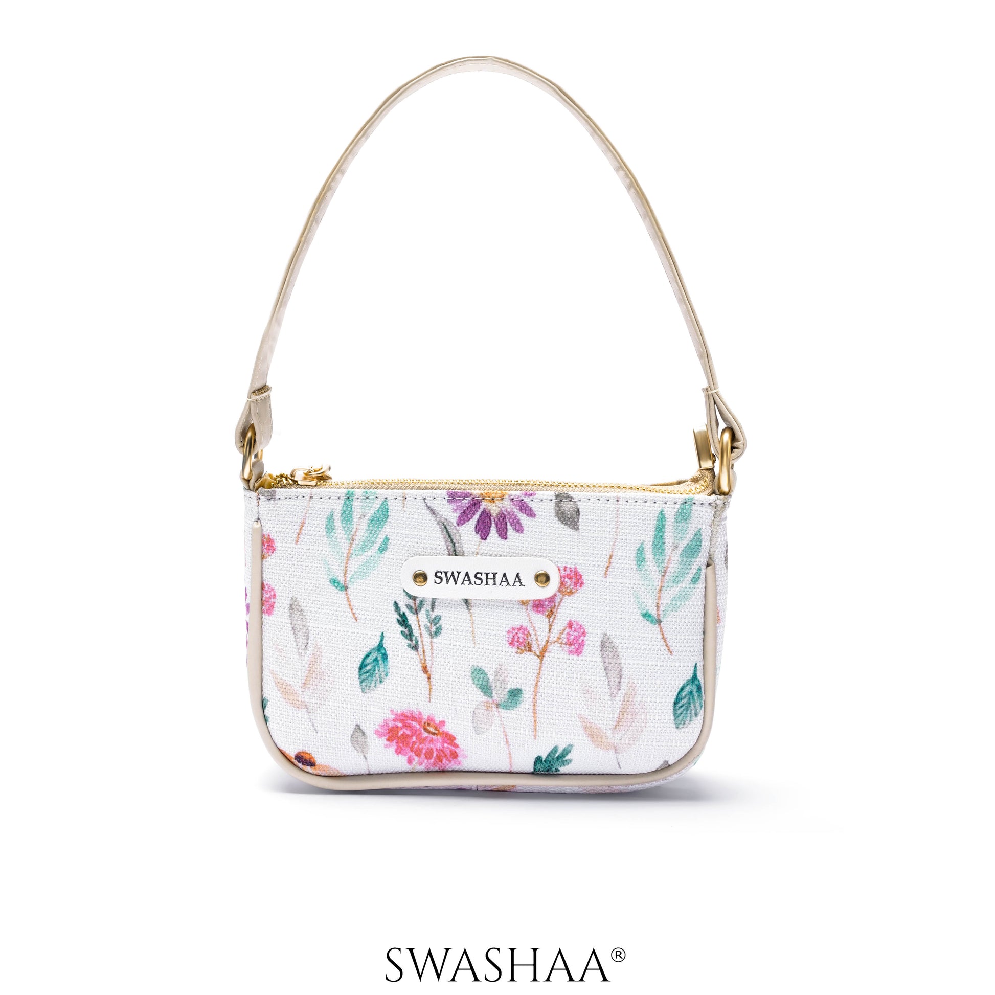 The Hobo print bag, crafted from Polyester Dobby Fabric, features a delicate floral pattern in soft pastels. Its compact, structured shape is complemented by a sturdy handle and secure zip closure. This elegant accessory combines style and functionality, making it a perfect addition to any outfit.