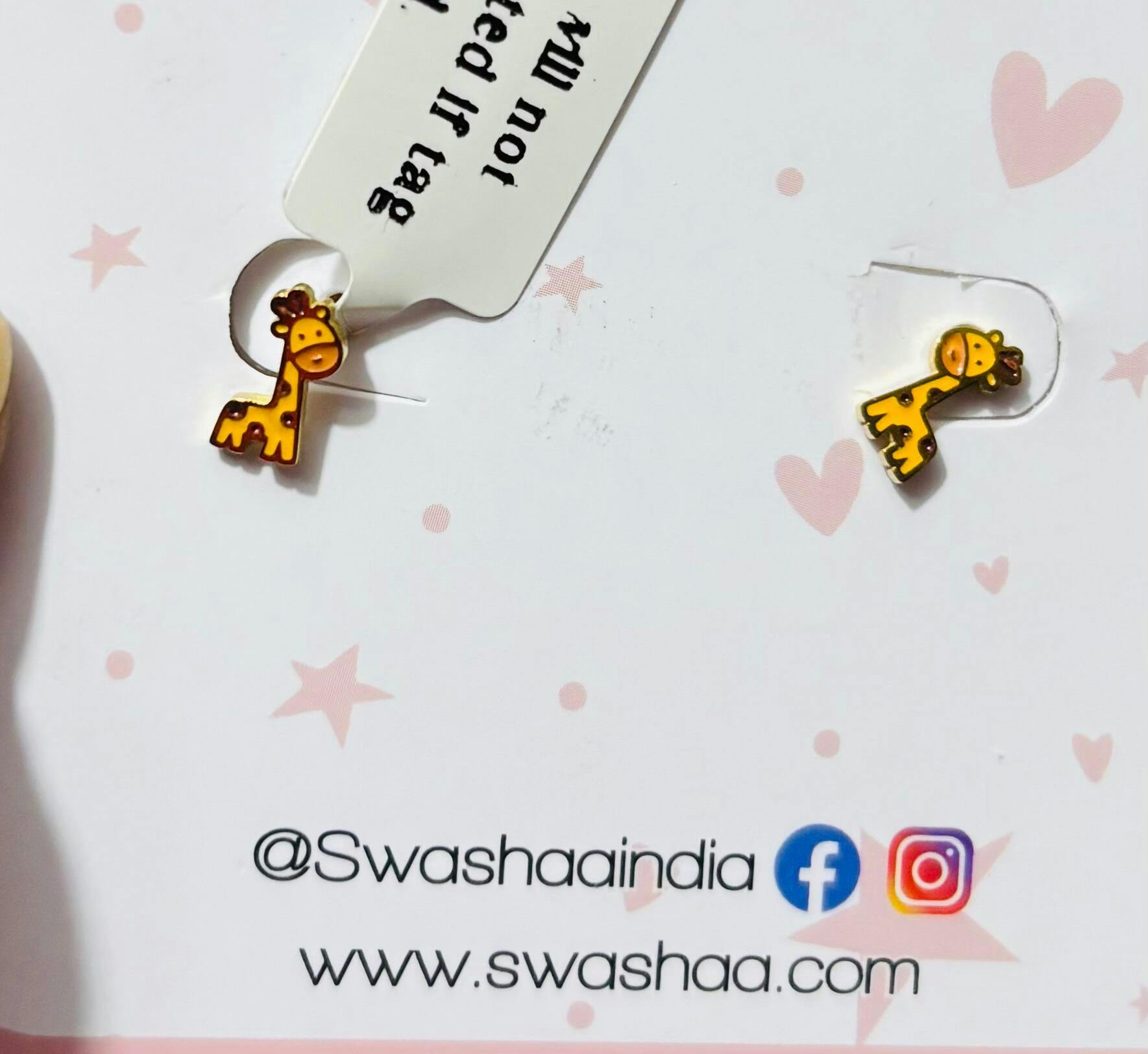 The Rooh Giraffe Kid's Earrings bring a playful charm to your little one's accessory collection. Featuring a cute giraffe design in a vibrant yellow enamel. Crafted with care and comfort in mind, they are lightweight and secure, making them ideal for kids.